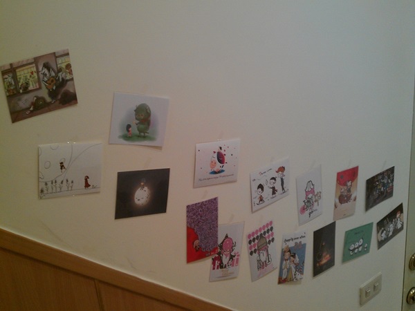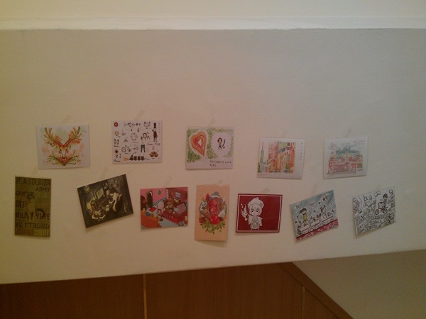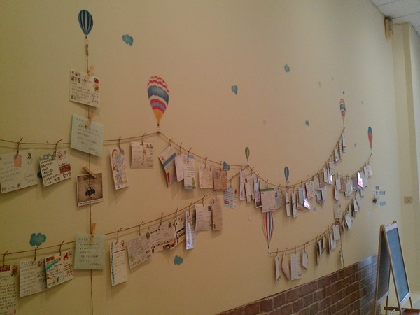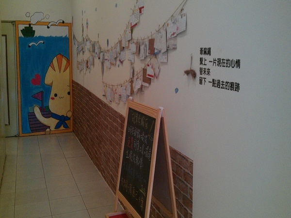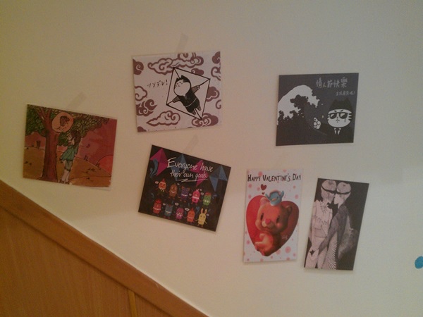 左邊是大家寄過來的明信片,用麻繩綁在牆壁上,不過我沒有寄,哈哈←偷懶