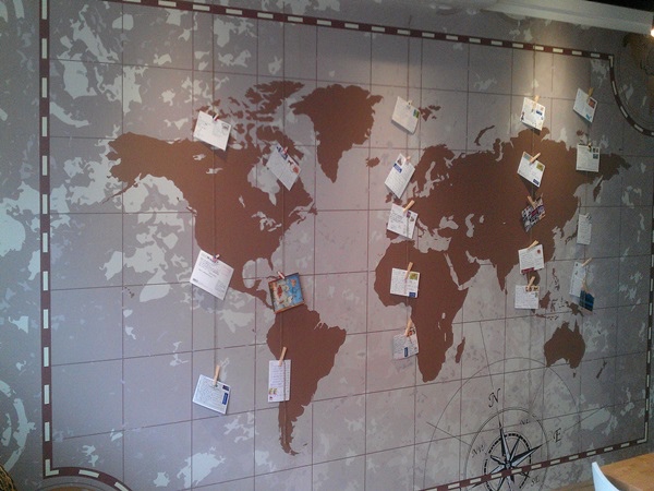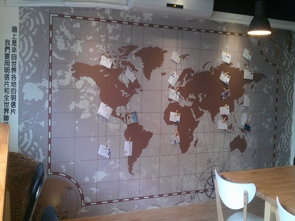後來才知道原來這面牆是兩位老闆用來放收到的外國明信片