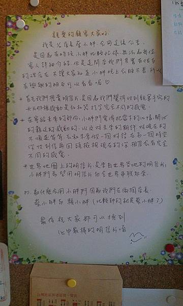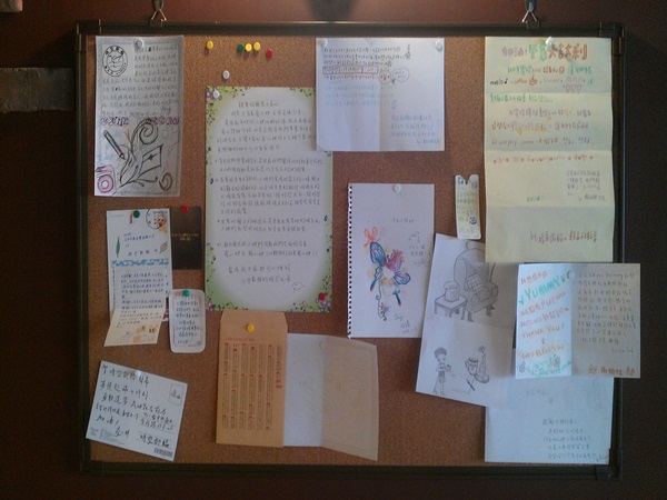 這是店裡的留言板,上面有來自客人跟老闆的留言