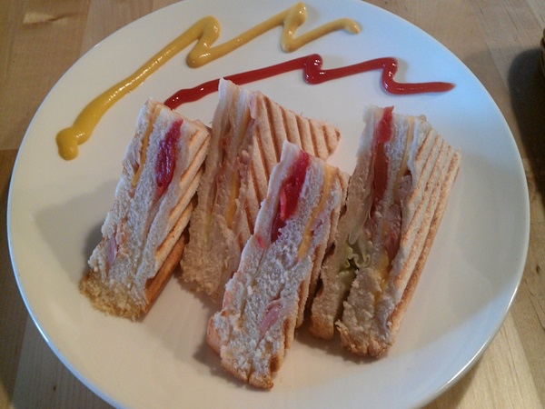 因為九點多起床,懶得吃早餐,只吃了一顆番茄(真的是一顆),所以點了燻雞三明治當早午餐