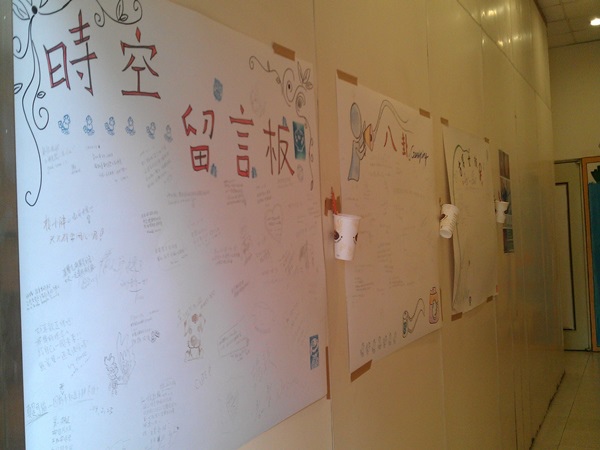 一樓入口處的左手邊有留言板可以寫字、畫圖,還有八卦版跟男女版,突然想到我好像有幾天沒有上PTT了XDDDDD